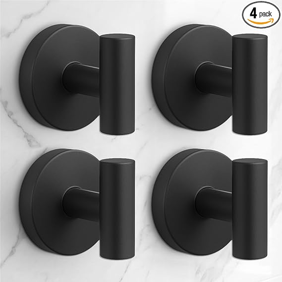 Heavy Duty Suction Cup Shower Hooks – Removable Metal Towel Hooks for Glass, Tile & Mirror, 4-Pack Black