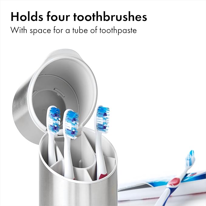 Good Grips Stainless Steel Toothbrush Organizer – Modern Countertop Bathroom Holder & Storage