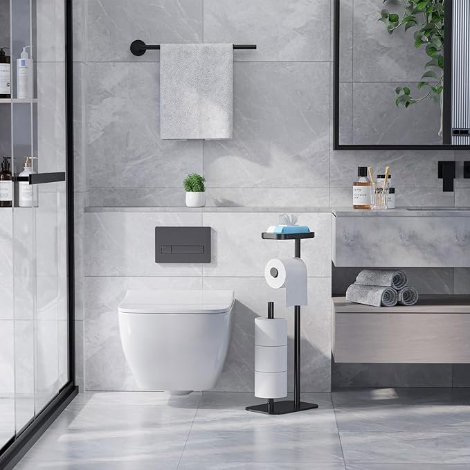 Bathth Freestanding Toilet Paper Holder Stand – Brushed Nickel Toilet Paper Storage Organizer