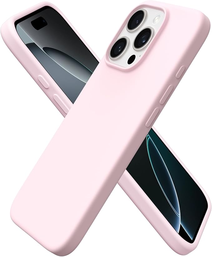 ORNARTO iPhone 16 Pro Case – Slim Liquid Silicone, Chalk Pink